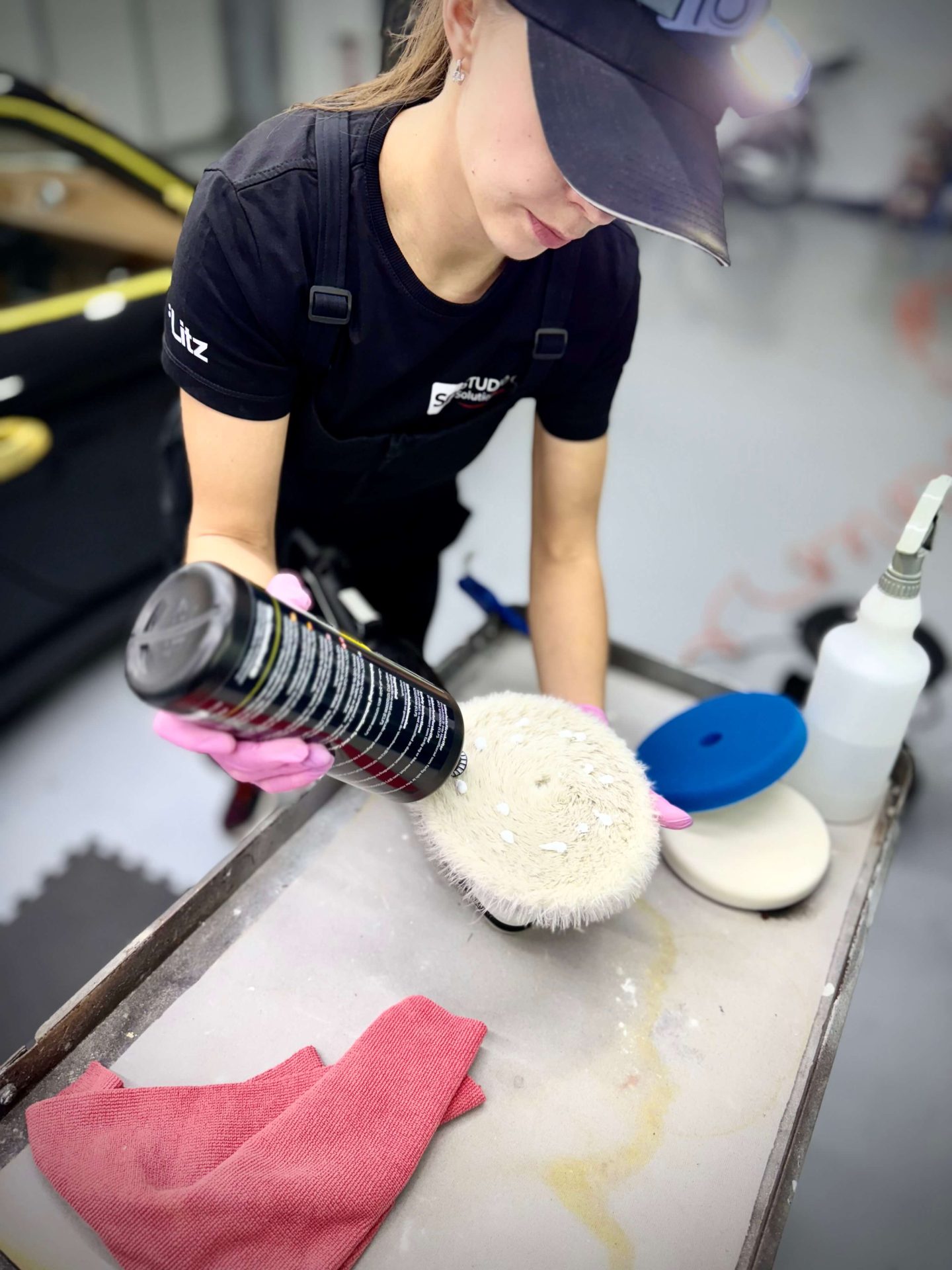 En StudioCar sabemos que cada Porsche es único, y que un cliente exigente merece un acabado impecable. Nuestro proceso comenzó con un pulido profesional minucioso, diseñado para eliminar cada holograma, devolver la uniformidad al color y dejar la superficie lista para el paso decisivo: la aplicación del Ceramic Coating Porsche 911.