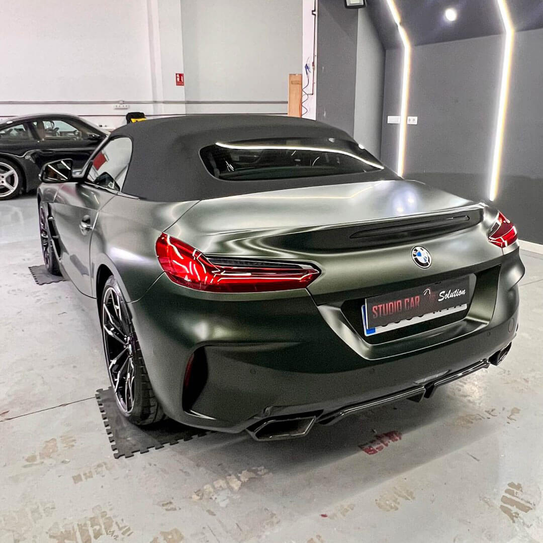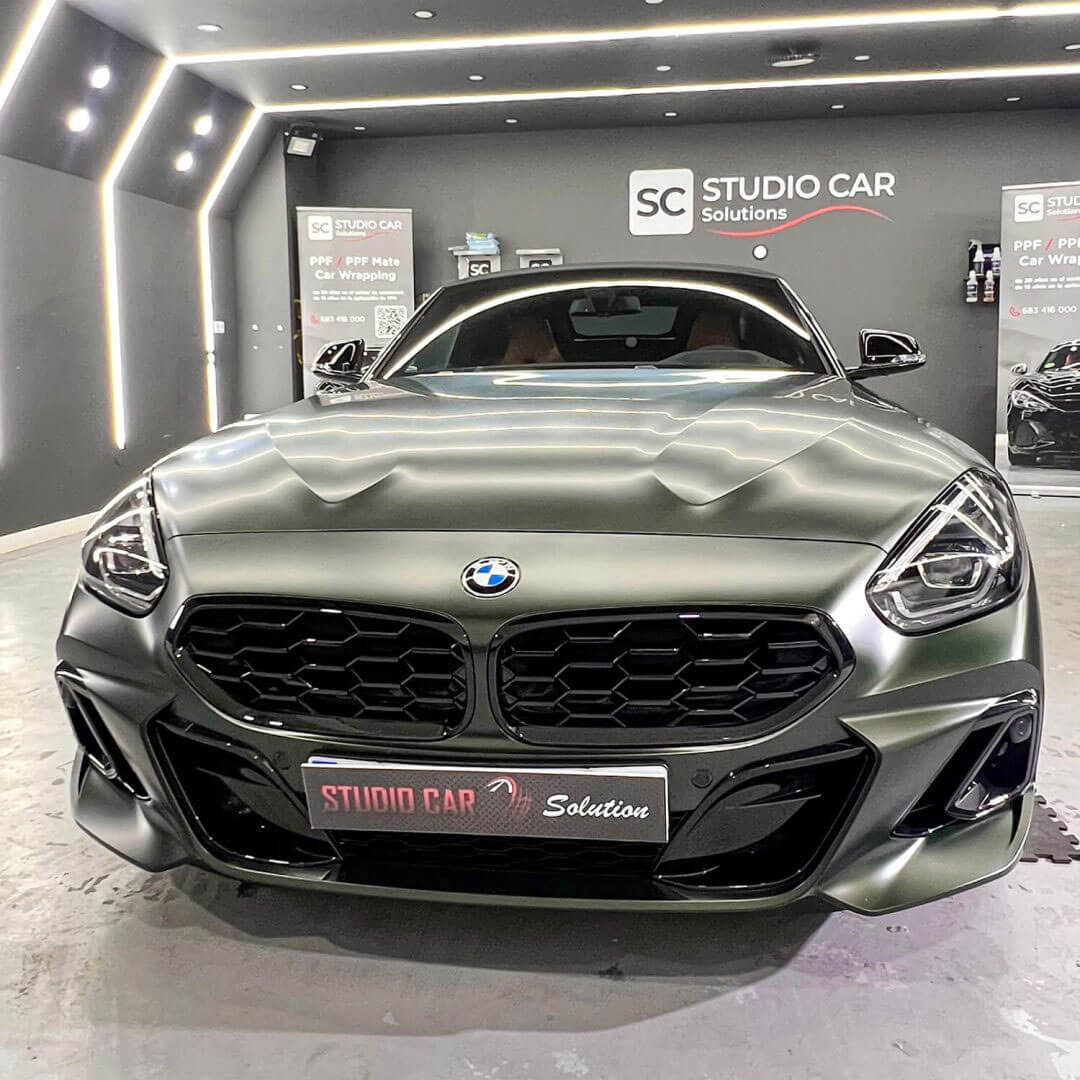 En StudioCar, cada coche cuenta una historia, y este BMW Z4 en color mate militar no es la excepción. Este espectacular roadster no solo roba miradas por su estética agresiva y elegante, sino que ahora está completamente protegido con nuestro tratamiento de protección cerámica en BMW Z4, un proceso meticuloso pensado para mantener intacto su aspecto exclusivo durante años.