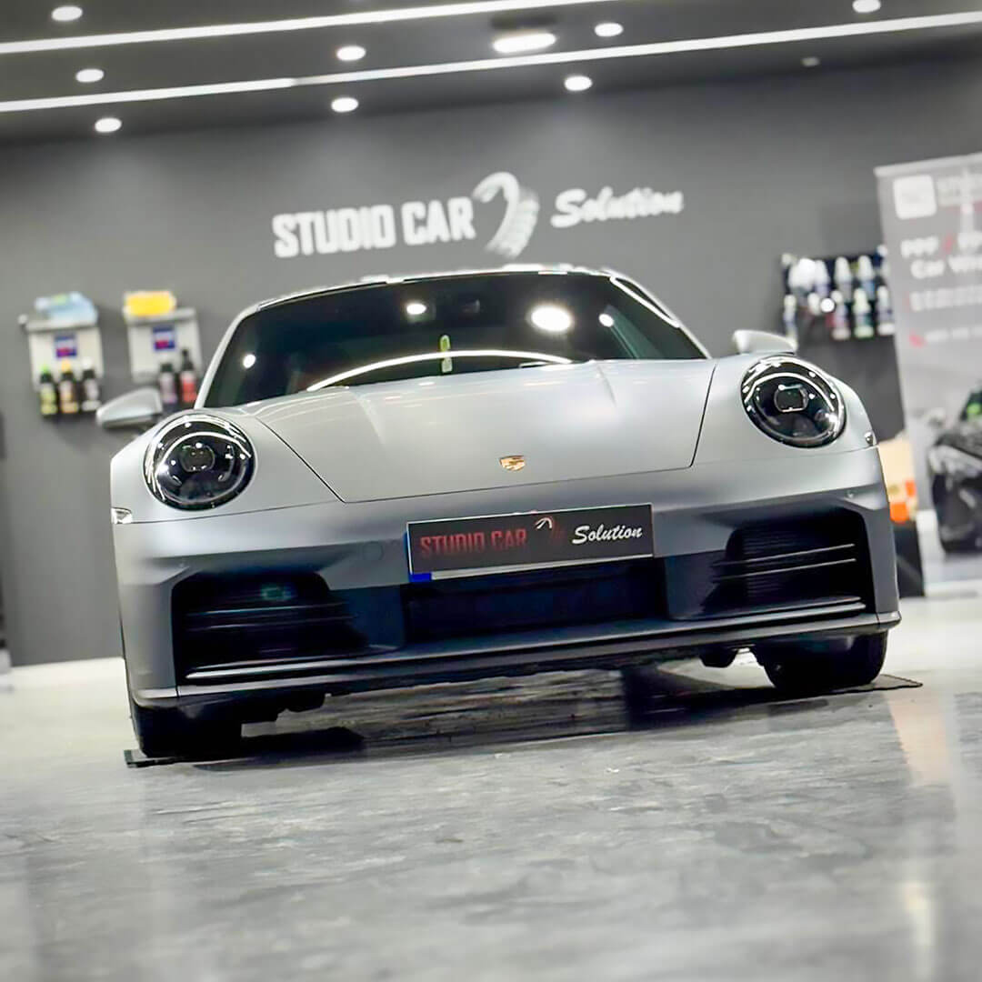Descubre cómo un Porsche deportivo pasó de fábrica a exclusivo gracias a la aplicación de PPF Mate en StudioCar Barcelona.